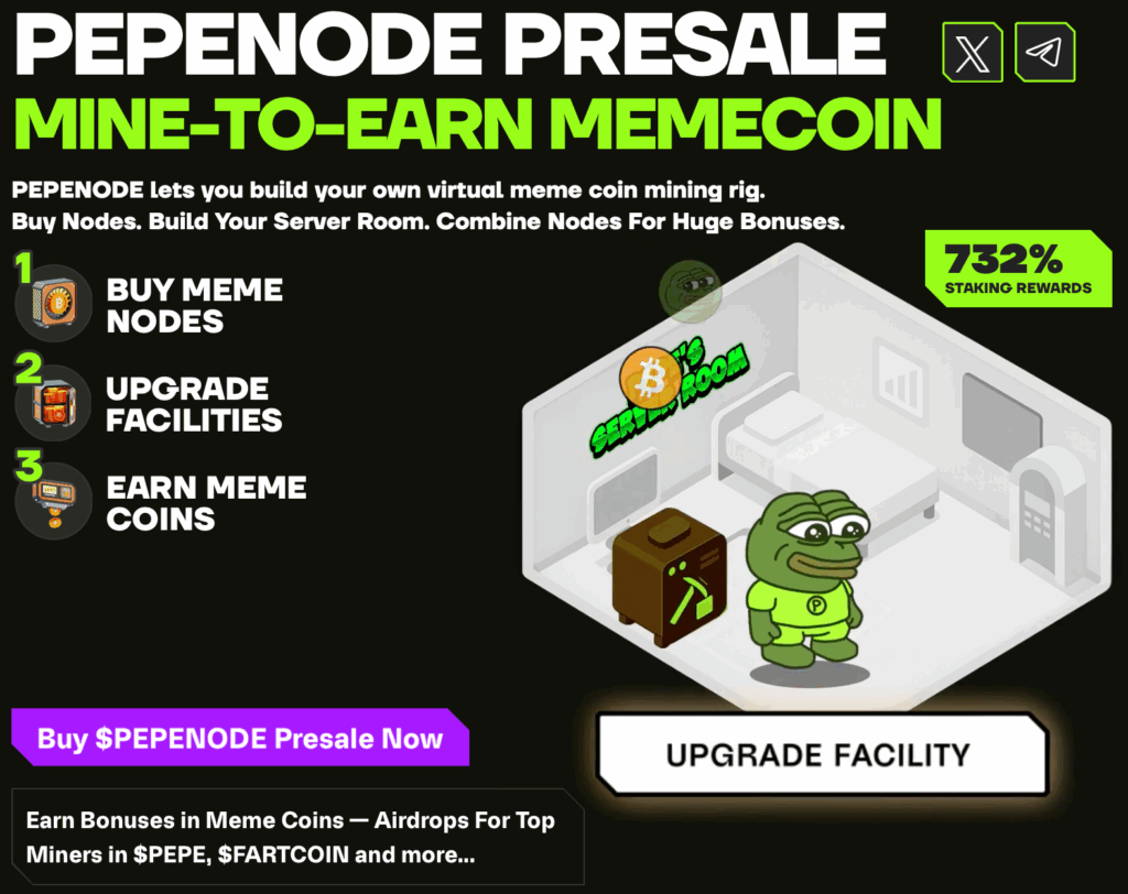 Questo crescente interesse spiega anche perché InsideBitcoins, una delle principali testate internazionali dedicate alle criptovalute, ha definito PEPENODE una meme coin con potenziale di crescita fino a 100x, sottolineandone le prospettive esplosive all’interno del settore emergente del mine-to-earn.