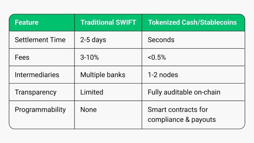 Non stiamo più parlando di teoria. Gli analisti hanno già dimostrato che i pagamenti tokenizzati possono eseguire automaticamente controlli AML/KYC durante il trasferimento. Niente intermediari di back-office, niente elaborazioni batch notturne, solo conformità in tempo reale su denaro programmabile.